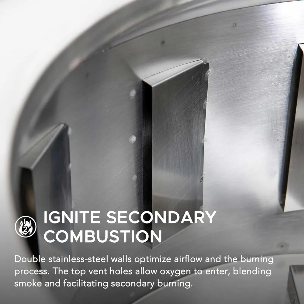 - Secondary Burning: Double stainless-steel walls and top vent holes enable cleaner, more efficient combustion
