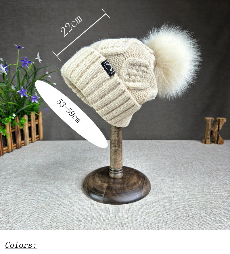 Women's Winter Beanie - Fur Pompom - Twist Pattern